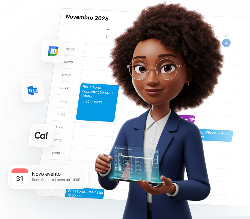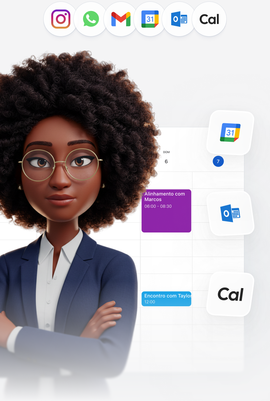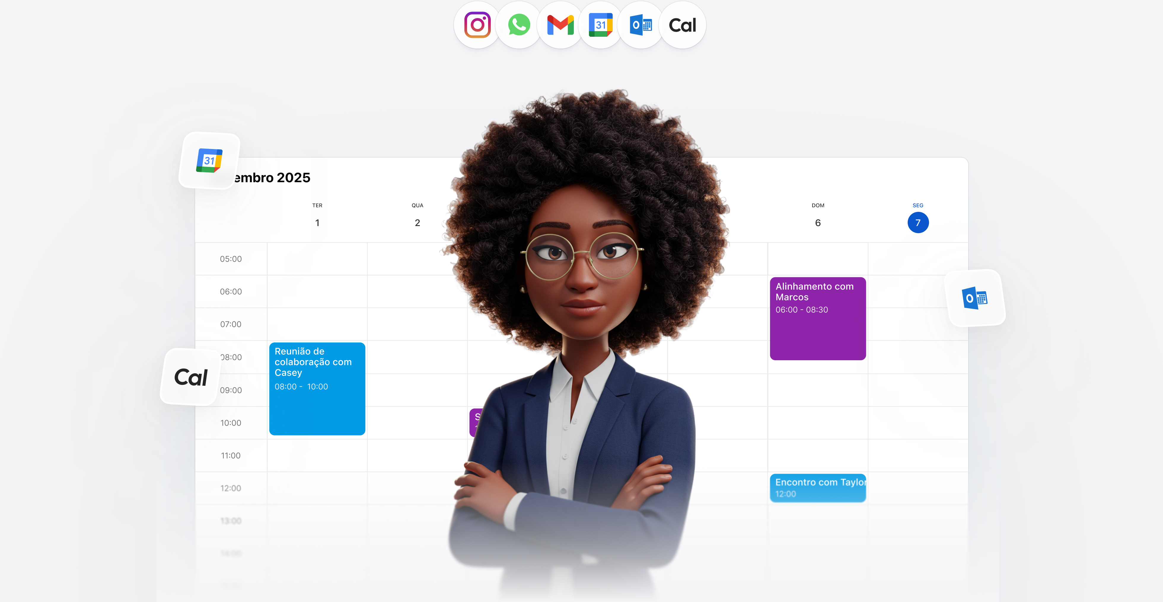 Conecta-se nativamente ao Google Calendar, Outlook, e outras ferramentas, garantindo que sua disponibilidade esteja sempre sincronizada em todas as plataformas que você usa.